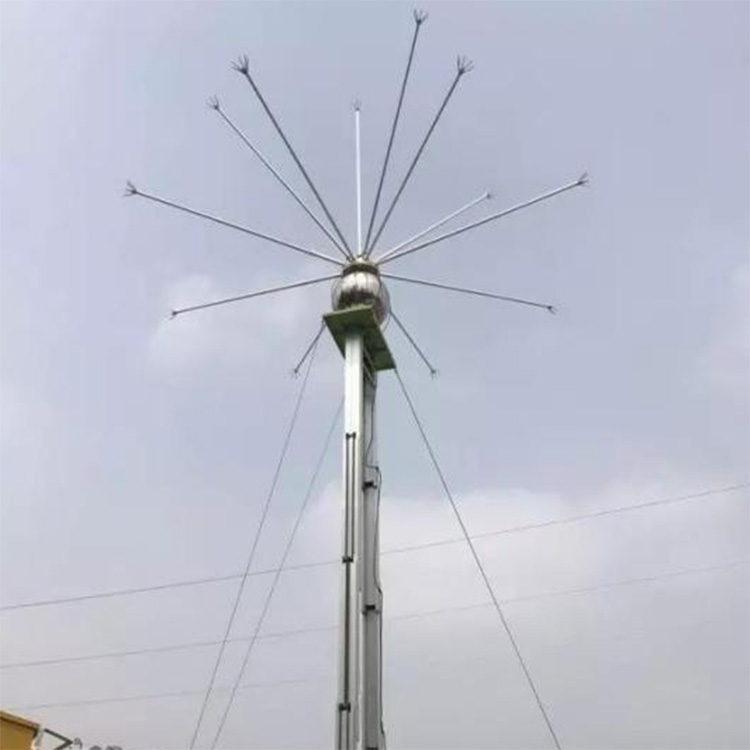 該產(chǎn)品利用金屬多短針形成的“似尖端效應(yīng)”,使電暈場(chǎng)消雷器周圍的環(huán)境電場(chǎng)遠(yuǎn)高于被保護(hù)目標(biāo)物,但低于傳統(tǒng)避雷針,從而使被保護(hù)物體處于相對(duì)安全的狀態(tài)。
